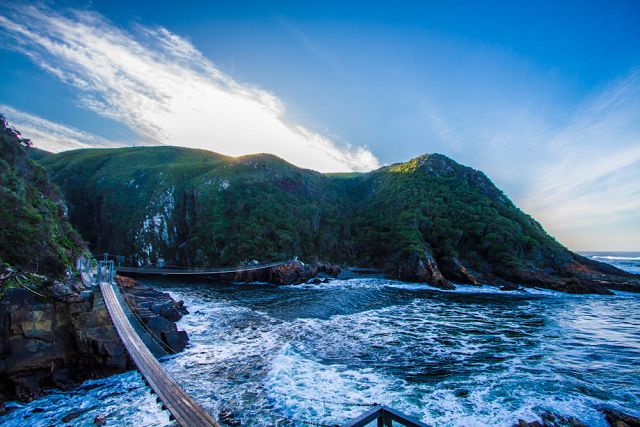 The Indian Ocean isn’t far off the Garden Route. Take the time to have a walk on the sandy beach of Jeffreys Bay, or surf the famous waves. Take in the sunset, with the red and orange sky on the warm ocean.