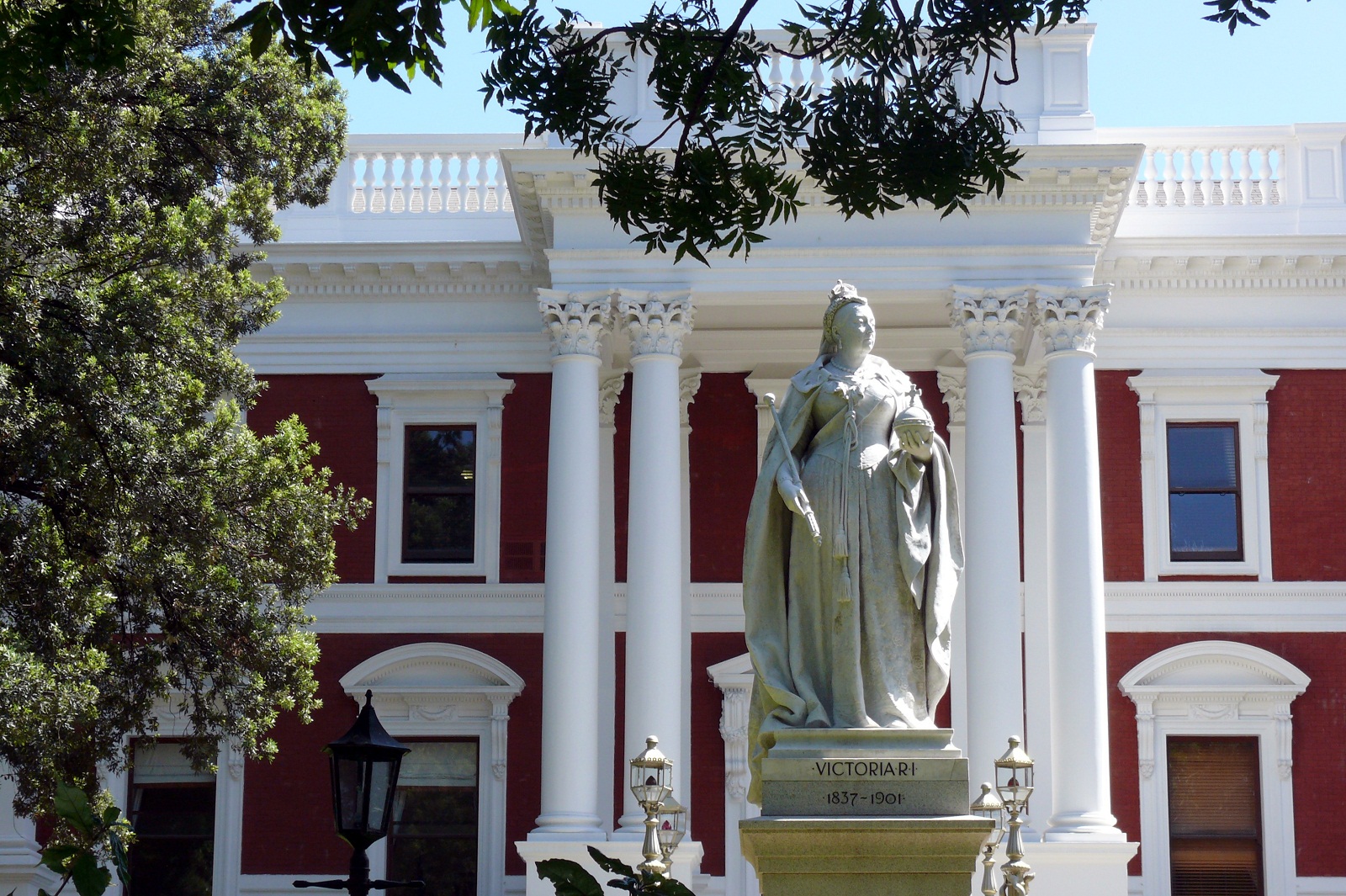 Right in front of it is the impressive statue of Queen Victoria.
