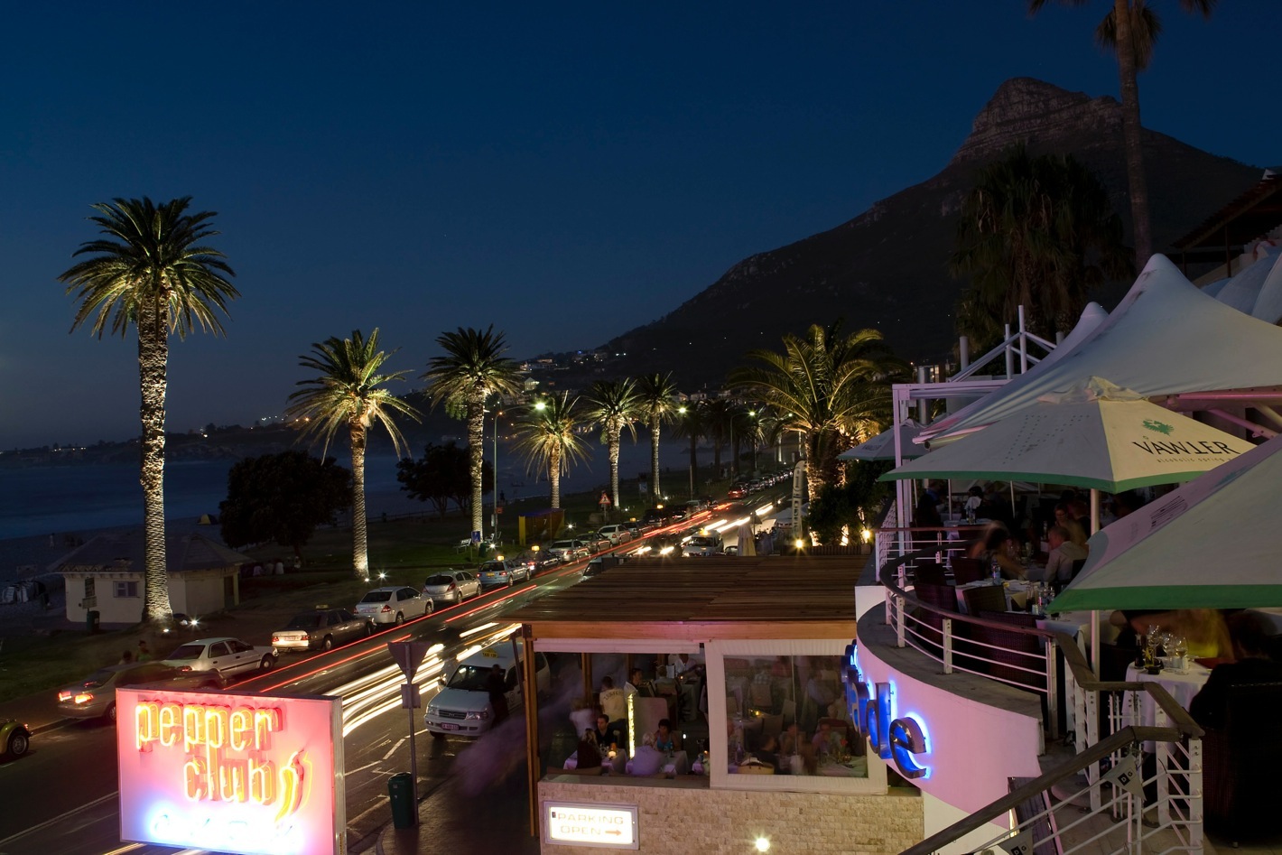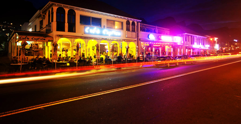 Take a drive down Long Street, the heart of Cape Town’s social life. This is an ideal place to stop, relax and refresh yourself with a drink at the many bars & restaurants while music fills the air. Travel to Camps Bay in the evening as the promenade also begins to buzz with people enjoying the sea air and sampling local foods served in the many restaurants along it’s course.